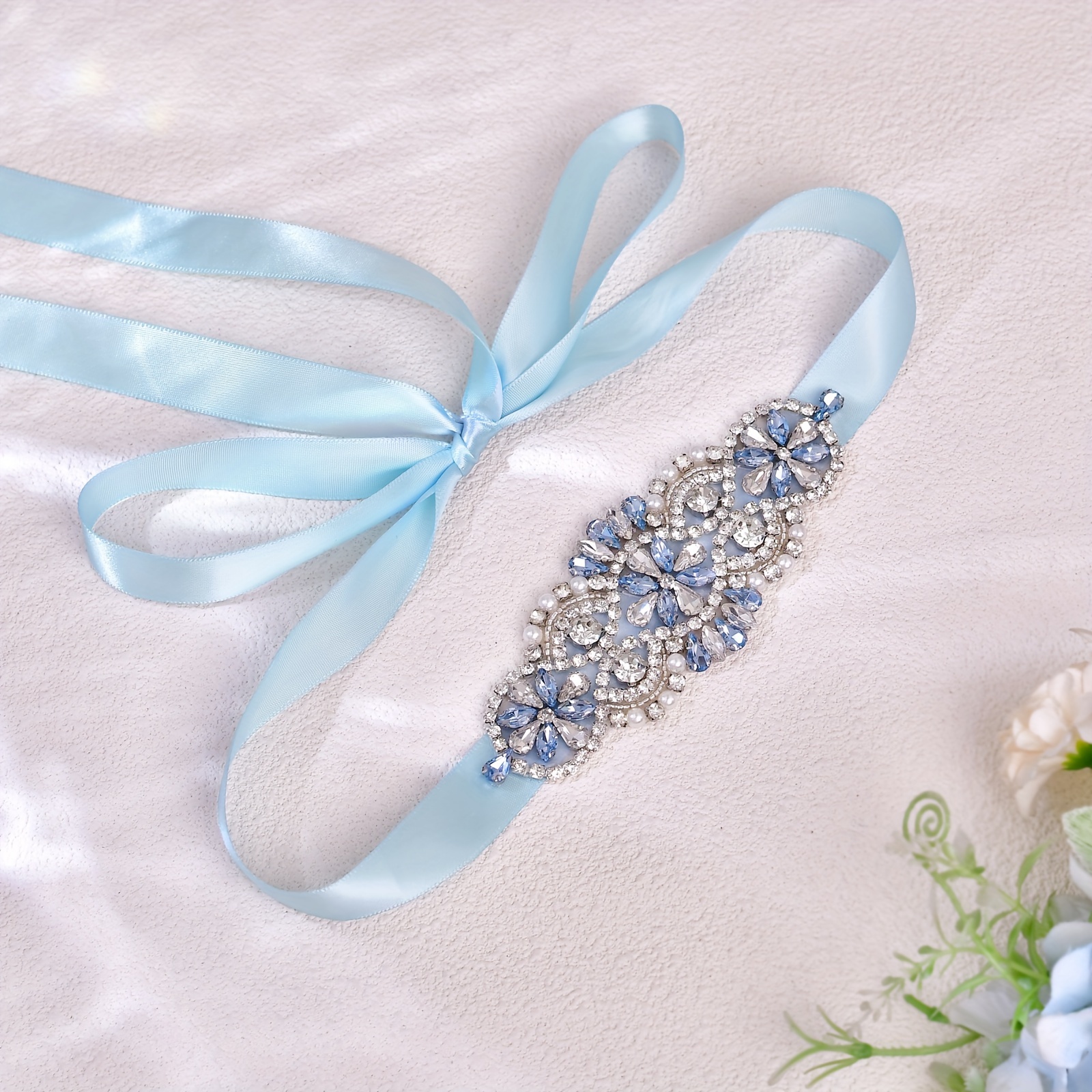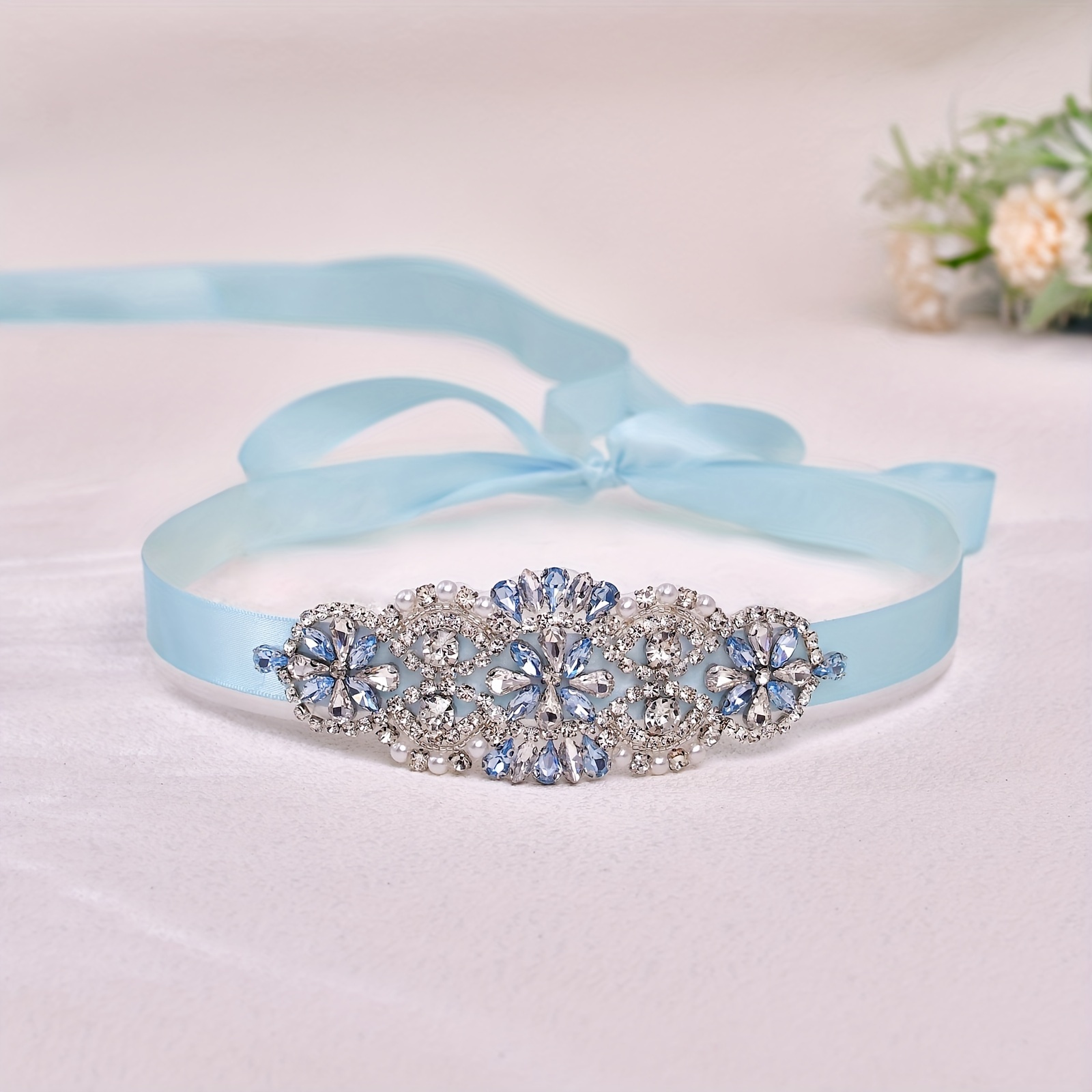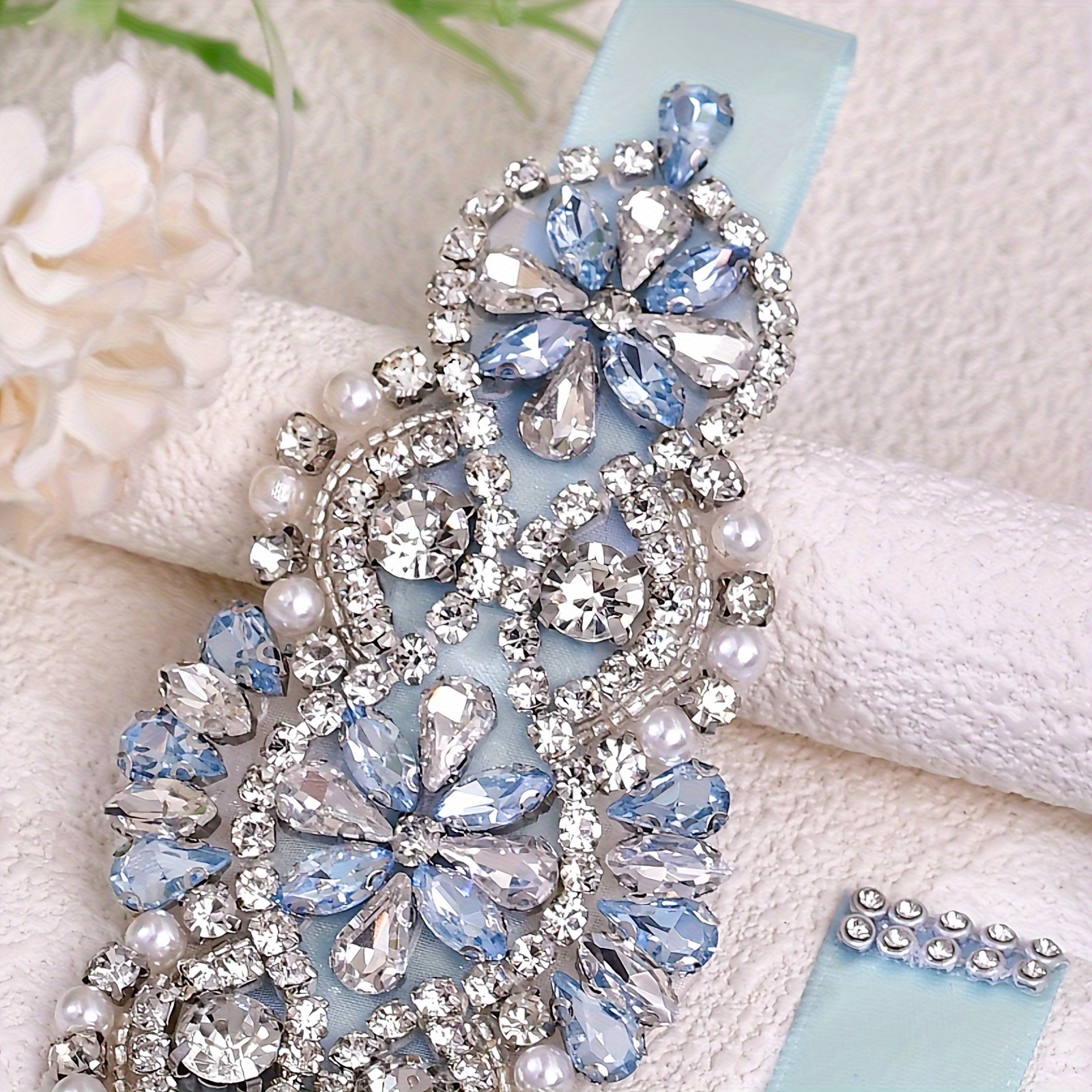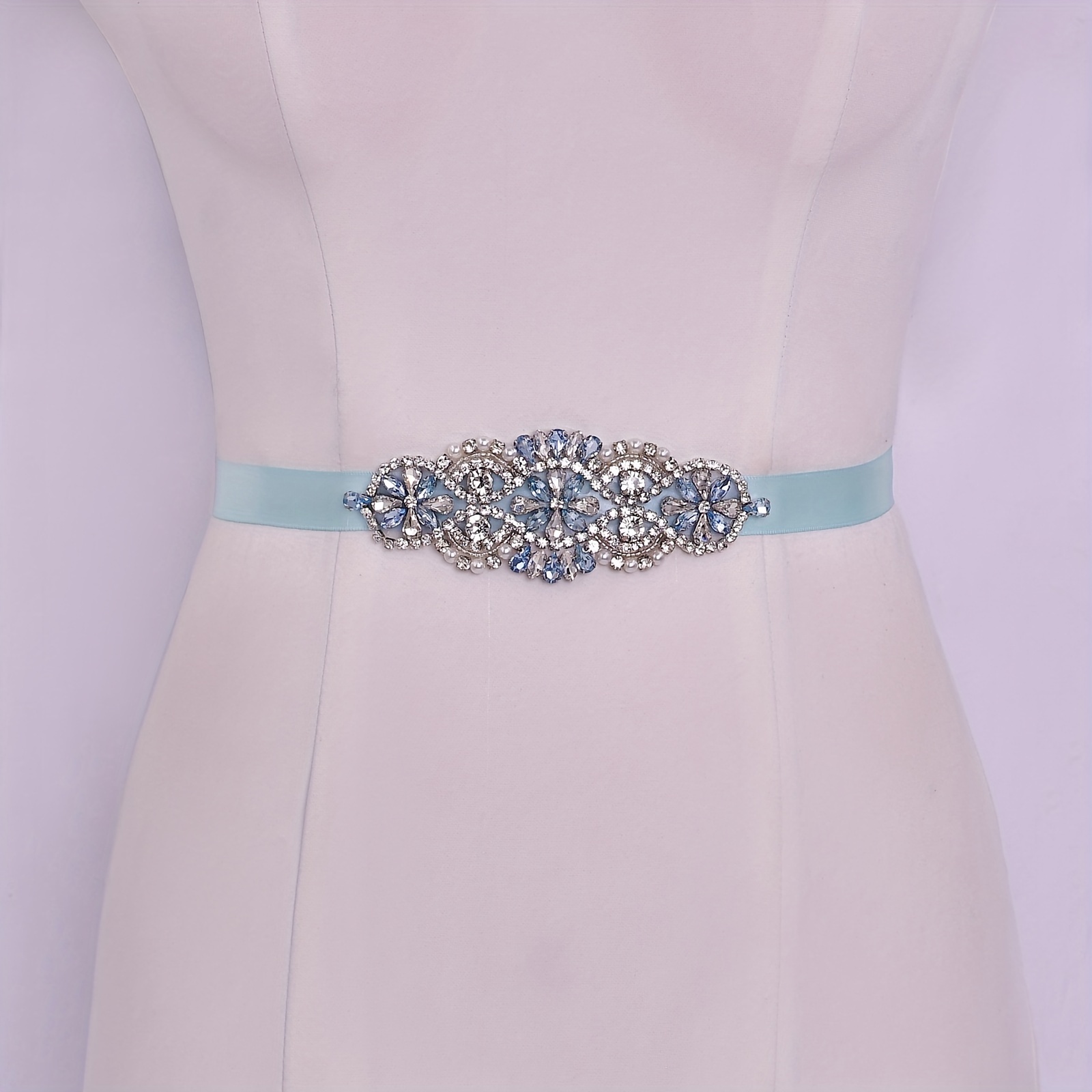 1pc Elegant Blue Rhinestone Sash for Brides - Fashionable Wedding Dress Accessory, Women'S Dress Decor for Birthday, Party, Evening Gown - Ideal Gift, Non-Washable